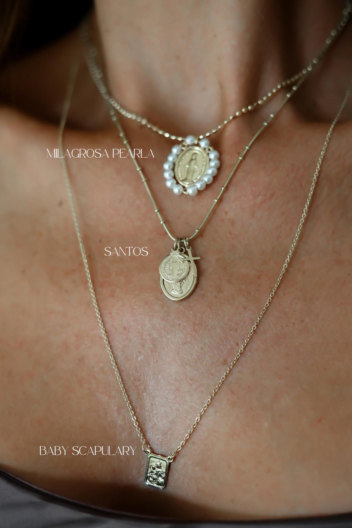 Add a touch of charm to any outfit with the Santos Necklace—a playful staple that’s perfect for everyday wear. Its simple yet stylish design makes it easy to mix and match, giving your look a fun and effortless vibe. Whether layered or worn solo, this necklace is your new go-to piece for a little sparkle and a lot of personality.