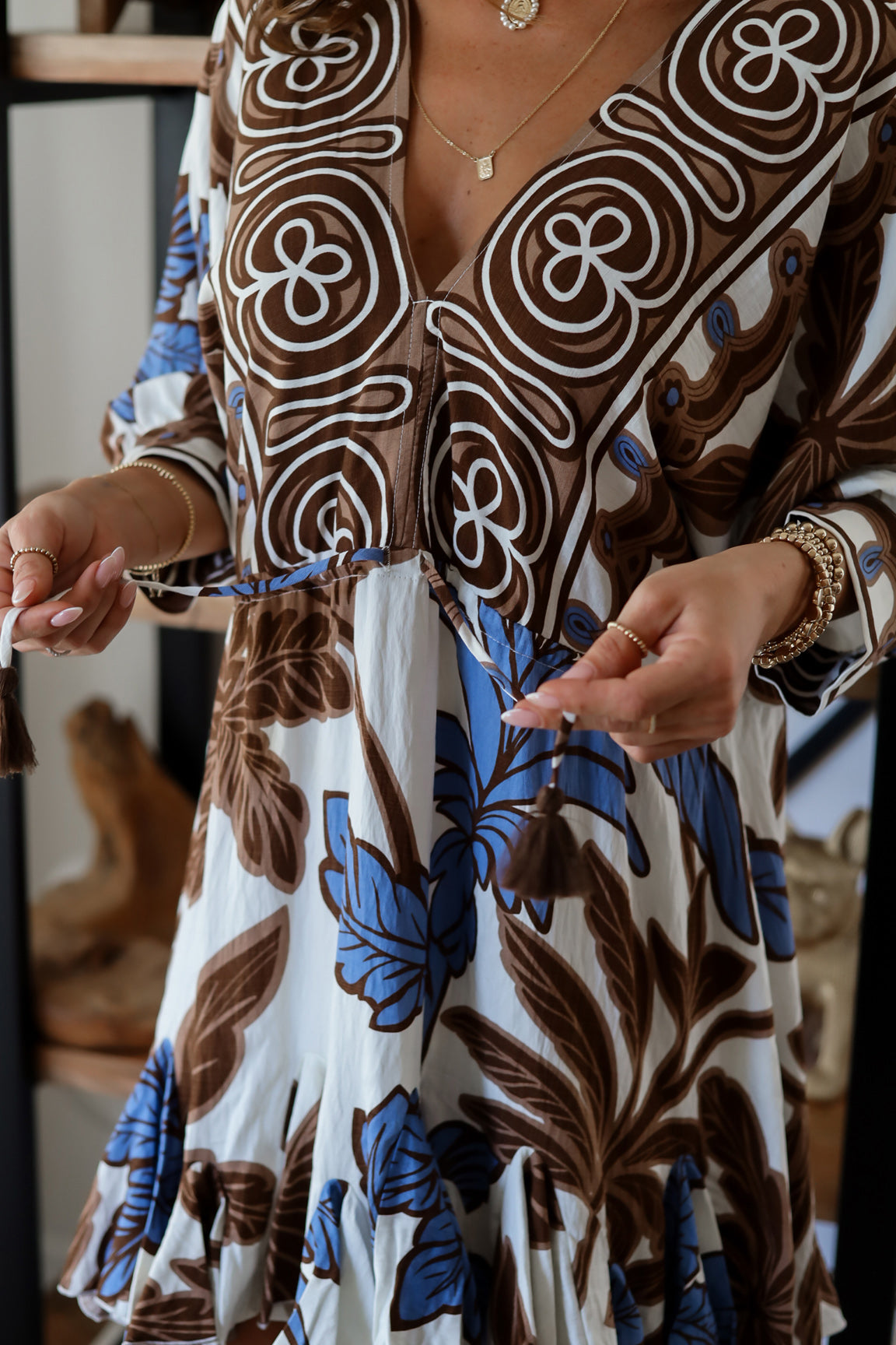 • 2 Prints: Blue/Brown Floral Print and Green/Brown Geometric Print