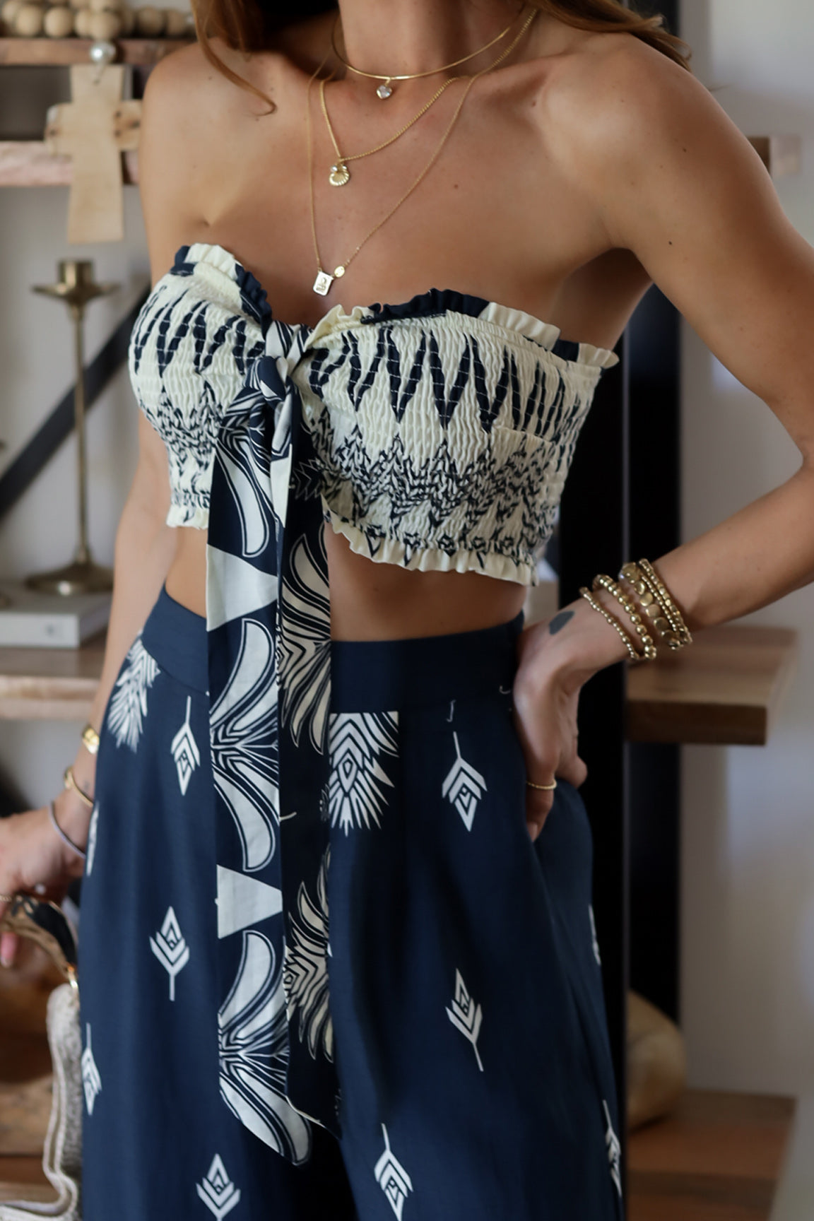 The Hayden Set is coastal getaway in outfit form. Think ocean air, sun-warmed skin, and walking to dinner with your hair still slightly beachy. It’s playful and pretty with a bold print that feels like a souvenir from somewhere beautiful. The vibe is relaxed but still beautifully dressed.