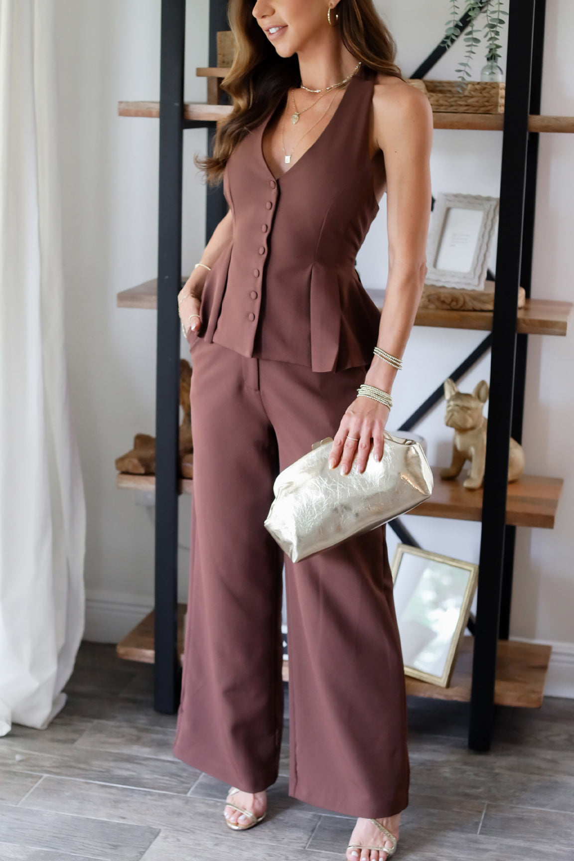 • Chic gold-tone accents that extend slightly for easy grip and seamless access