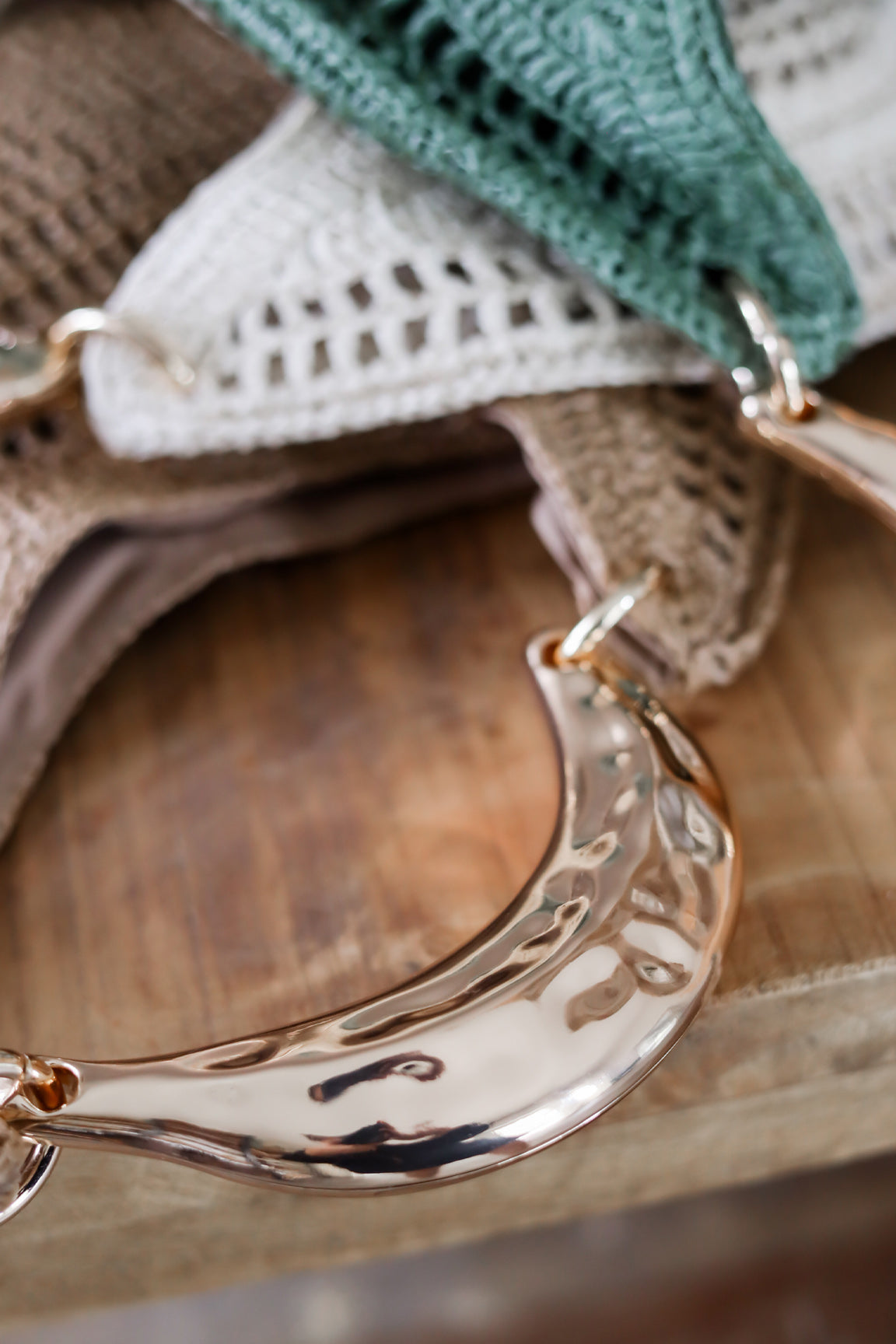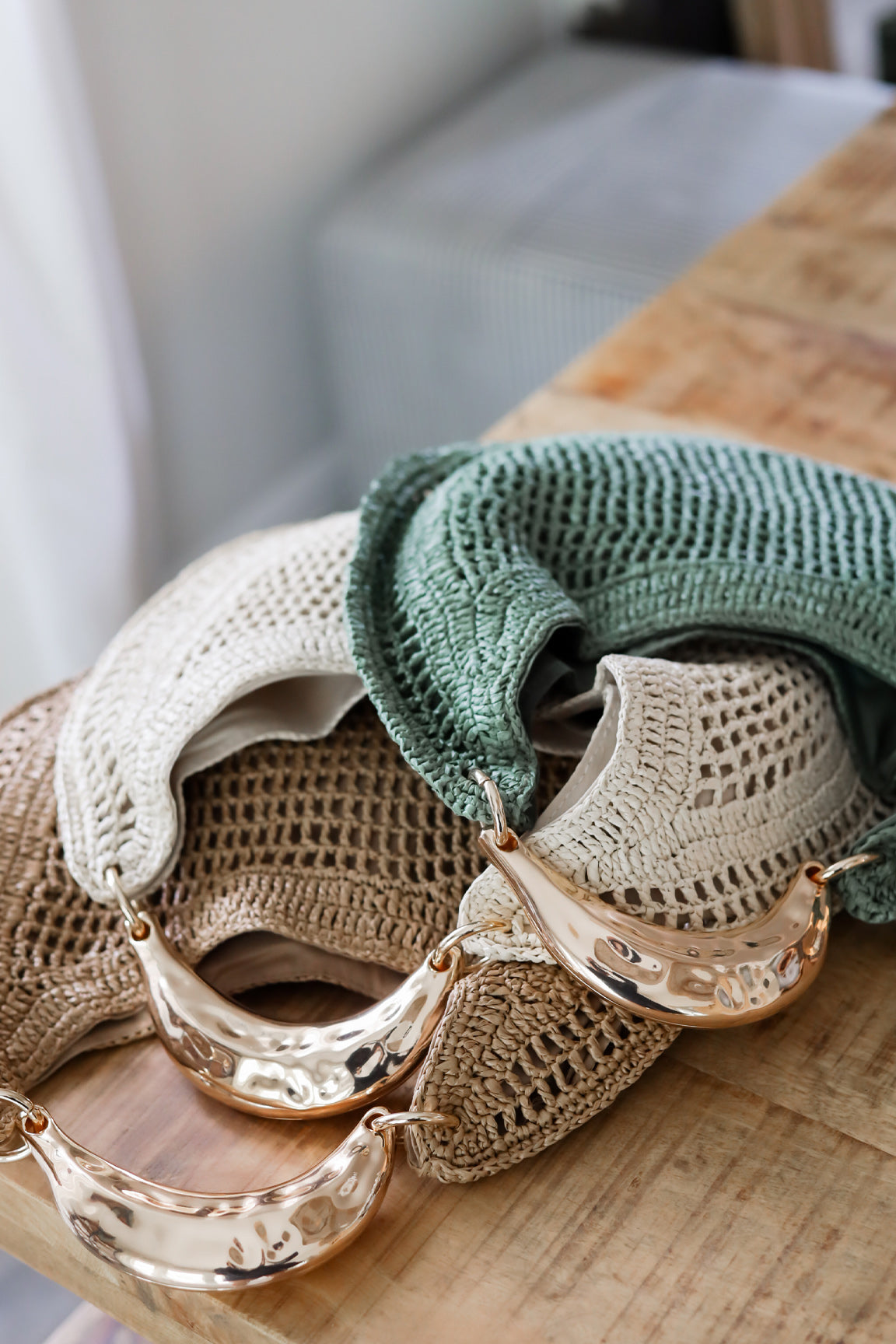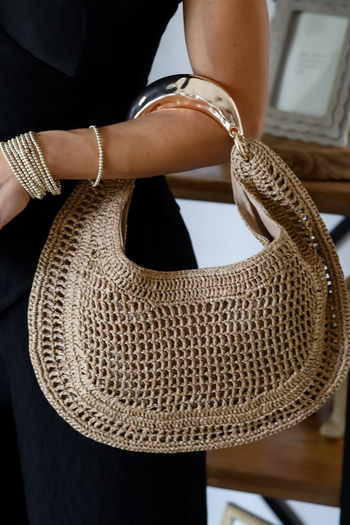 The Capri Handbag is giving effortless summer charm. Featuring a soft woven crochet body and a statement gold handle, this bag feels light, playful, and perfectly polished all at once. The crescent shape adds a modern touch while still keeping that breezy, beachy vibe. The Capri Handbag is perfect for warm-weather days, brunch dates, or vacation strolls.