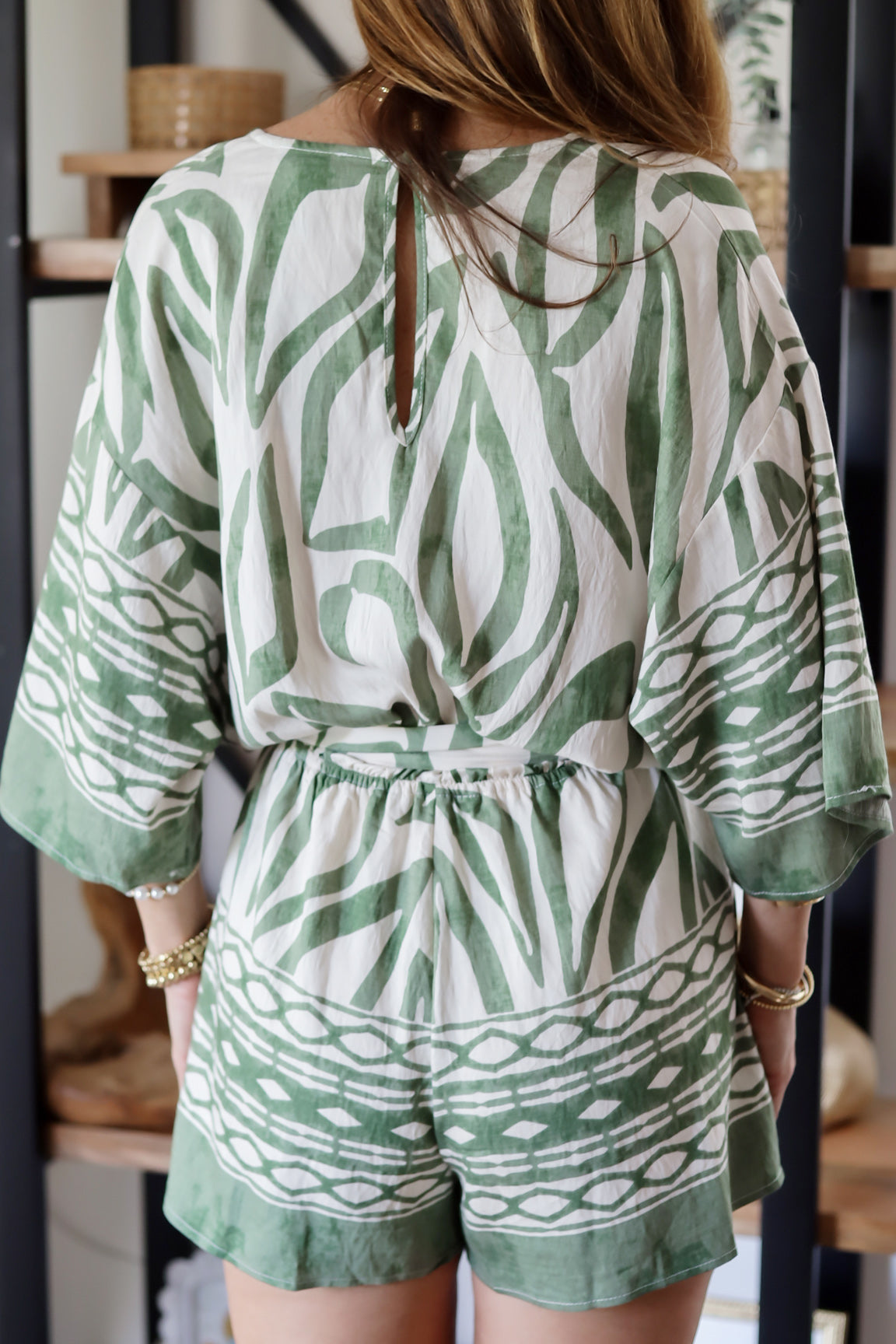 Made for warm days and getaway moods, the Margot Romper is effortless and eye-catching all at once. The relaxed silhouette drapes beautifully through the top, while the adjustable tie waist lets you define your shape just the way you like. The bold green print feels fresh and elevated, balanced by the soft, breathable fabric that keeps it easy to wear.