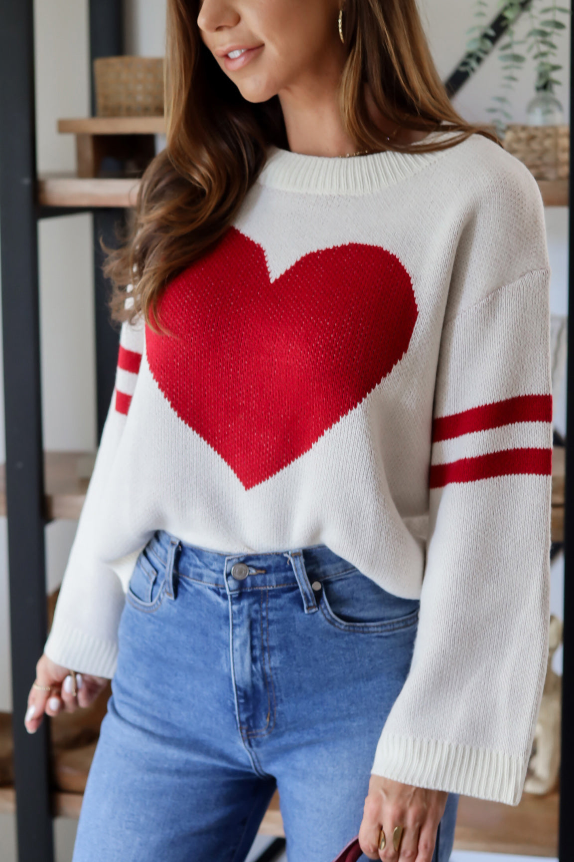 Spread the love in a knit you’ll want to wear again and again. Soft, comfy, and effortlessly cute, it’s perfect for Galentine’s plans, casual days out, or anytime you want your outfit to feel a little extra special. Pair it with denim now, layer it later-this is one of those cozy pieces you’ll keep reaching for.