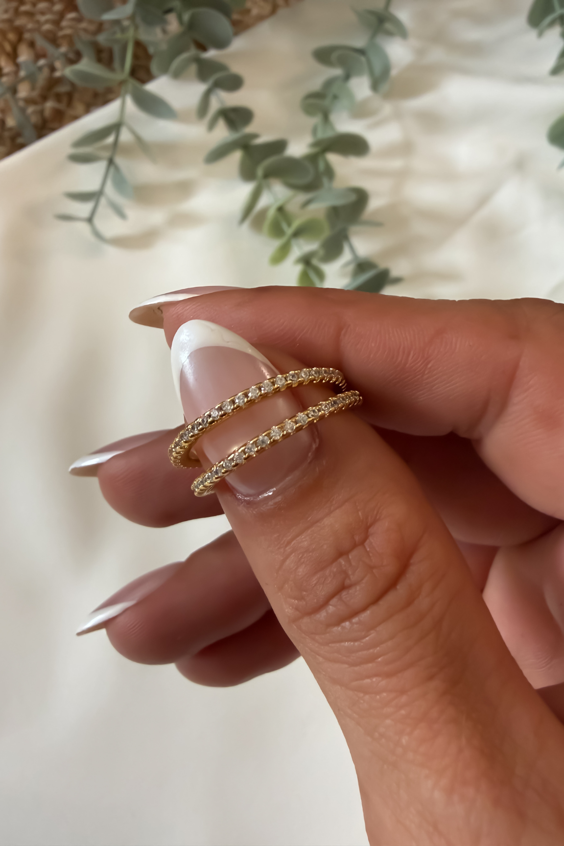 This 18K Gold-filled eternity-style band features a continuous row of sparkling stones set all the way around, creating effortless shine from every angle. Timeless and refined, it’s designed for everyday wear. You can style it solo for a polished look or stacked with your favorite rings for added dimension!